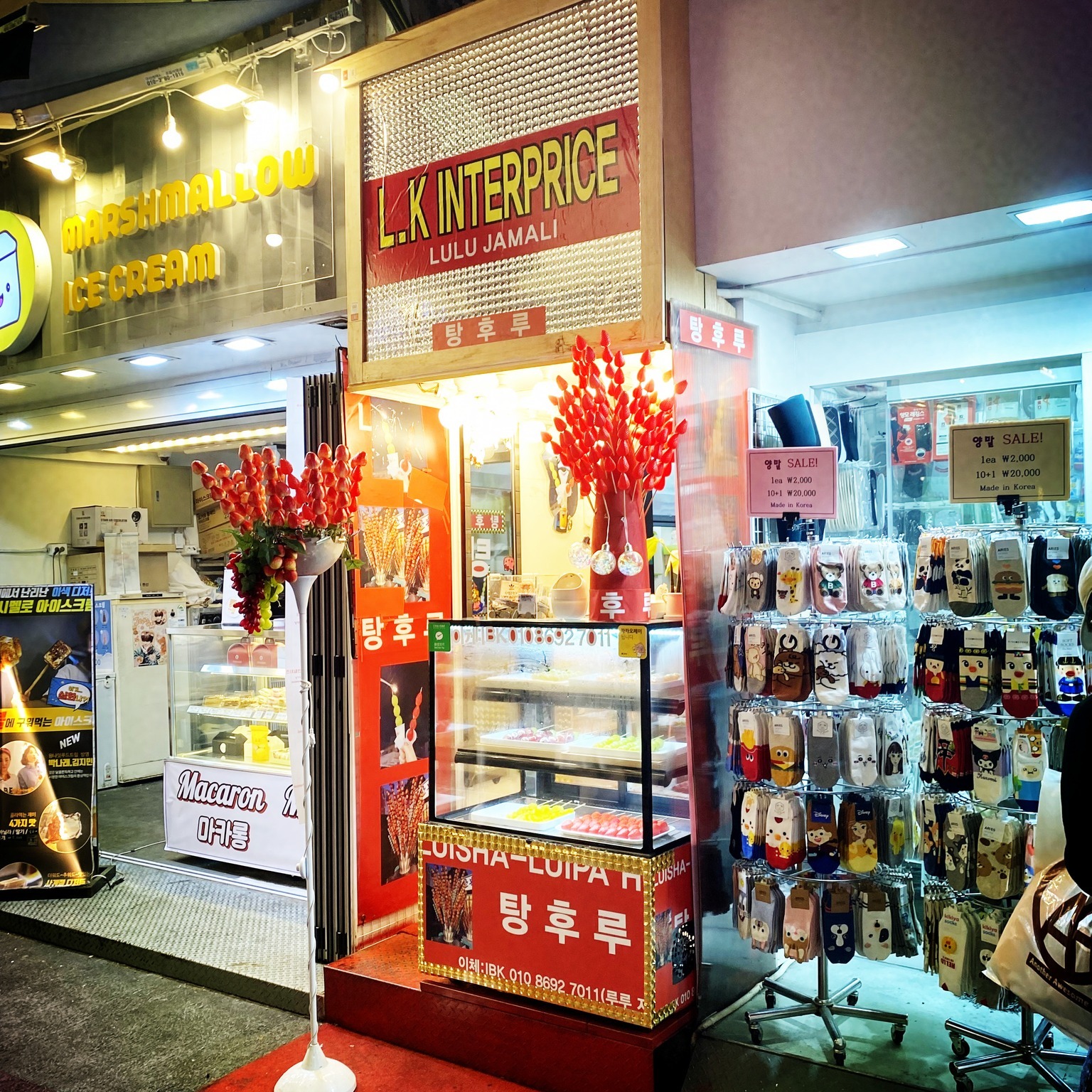 在韓國最大的糖葫蘆品牌店「王家糖葫蘆」