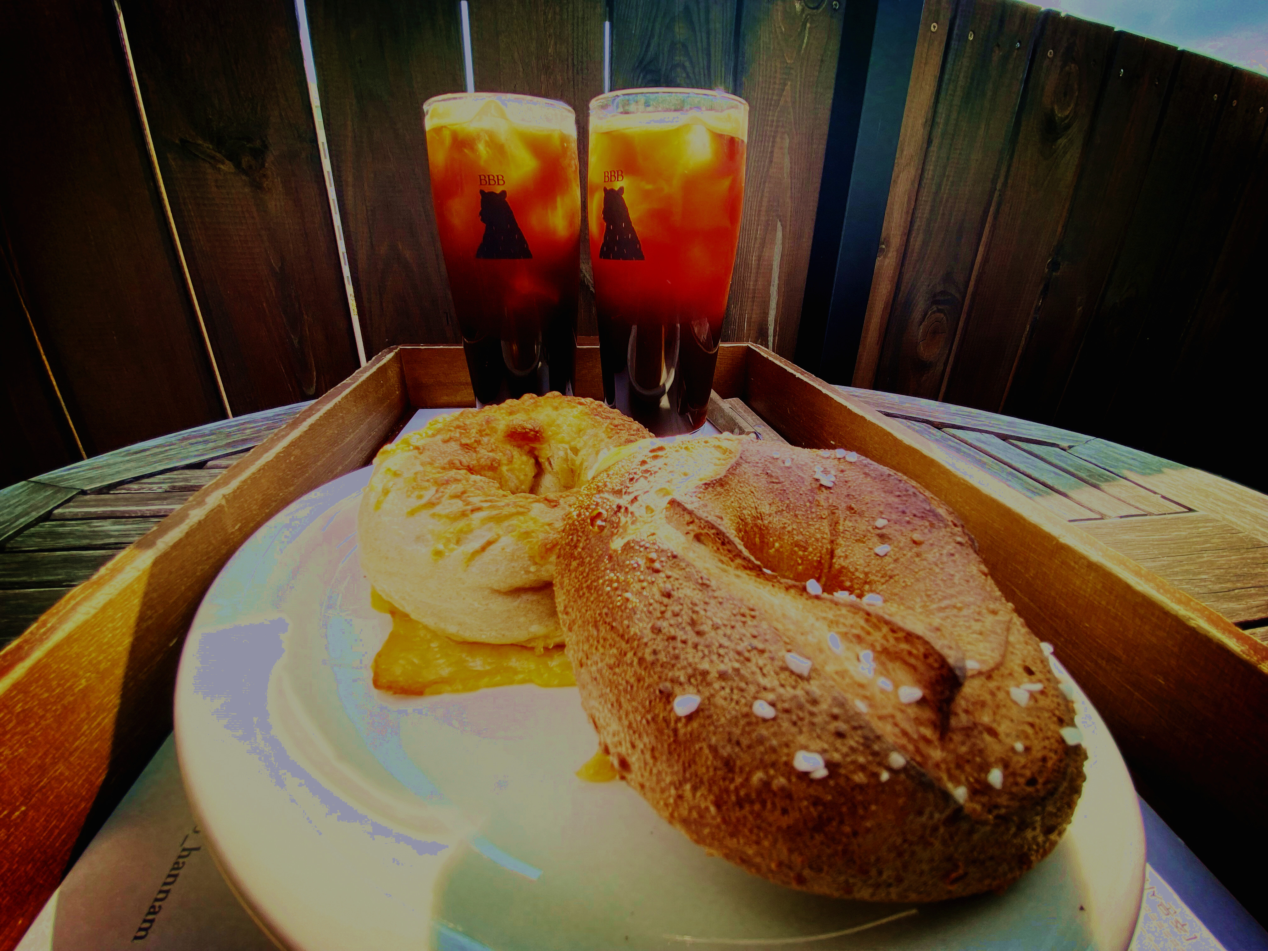 在陽光下吃貝果,也是很讚的!