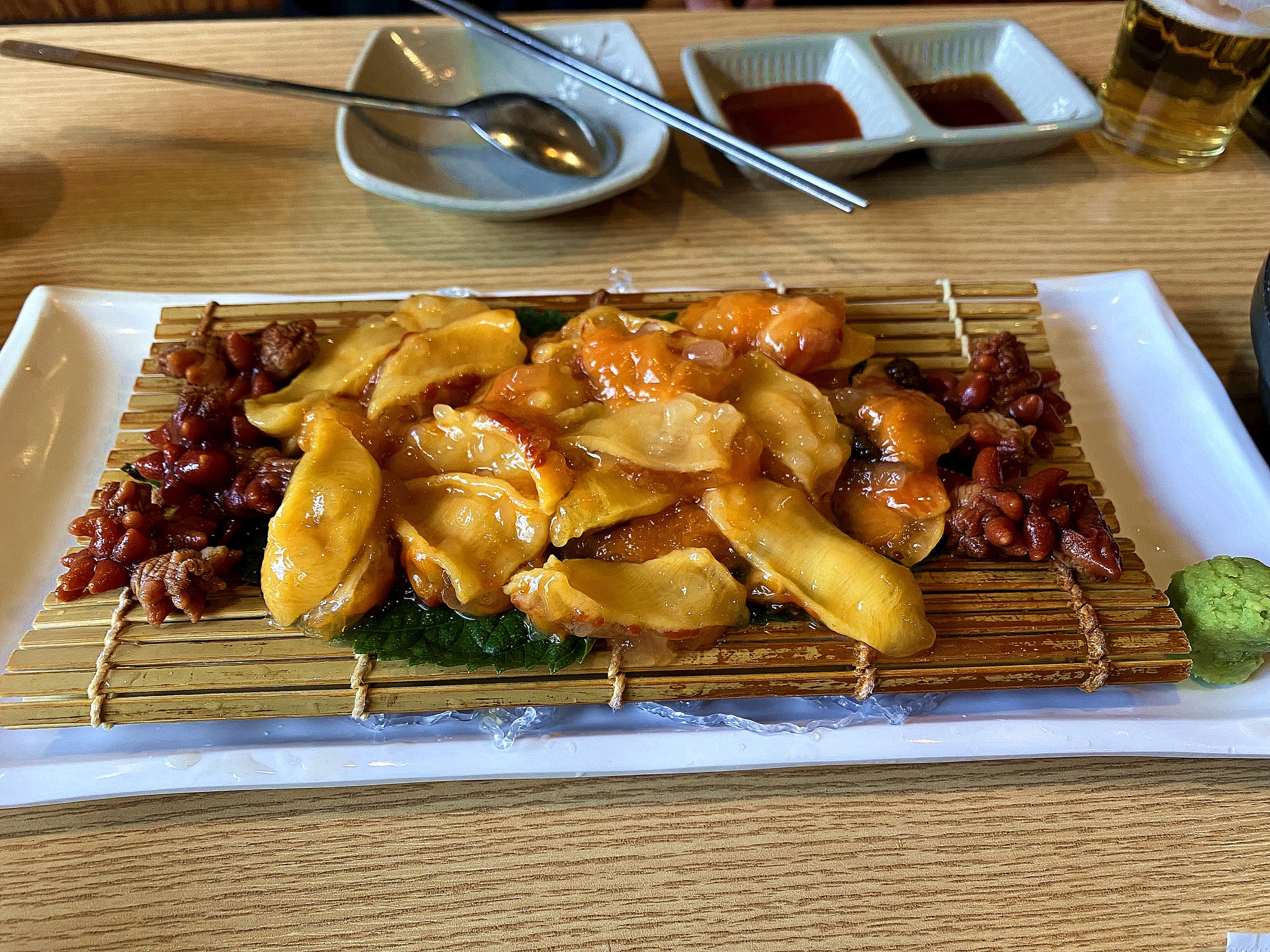 一盤海菠蘿生魚片,大約2~3顆